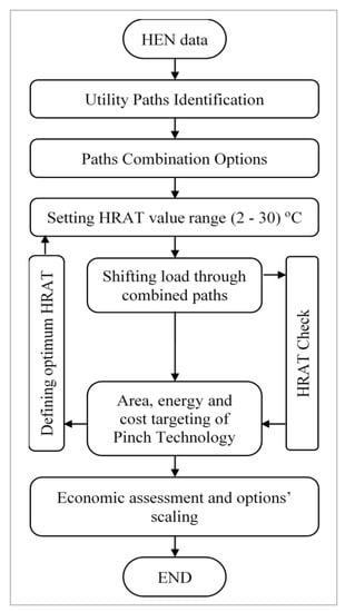 An approach of path combination was developed by Osman et al. to generate several retrofit options to optimize energy consumption in an existing HEN. The options are sets of combined utility paths in a HEN. The same method of path combination is used to investigate heat recovery enhancement in HEN of variable streams’ temperature. Recently, they applied the same approach to investigate the environmental energy-saving in HEN along with the impact of CO2 emission [10,11,12].