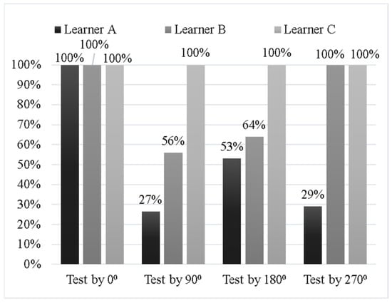 for each learner. When the same image as the trained rotated image was used as the testing image for inference, it was confirmed that