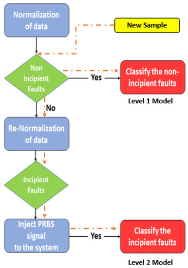 - If the sample is not identified accurately by the model for group 2, PRBS signals are injected as specified in step 6 of the training procedure, and the corresponding faults are diagnosed from the resulting data.