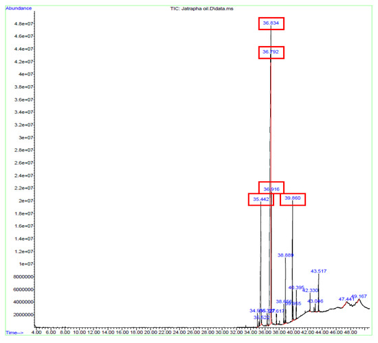 - Emil, A.; Yaakob, Z.; Kumar, M.N.S.; Jahim, J.M.; Salimon, J. Comparative evaluation of physicochemical properties of jatropha seed oil from Malaysia, Indonesia and Thailand. JAOCS J. Am. Oil Chem. Soc. 2010, 87, 689–695. [Google Scholar] [CrossRef]
