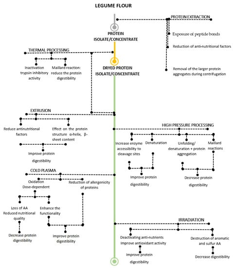 - Sá, A.G.A.; Moreno, Y.M.F.; Carciofi, B.A.M. Food processing for the improvement of plant proteins digestibility. Crit. Rev. Food Sci. Nutr. 2020, 60, 3367–3386. [Google Scholar] [CrossRef] [PubMed]