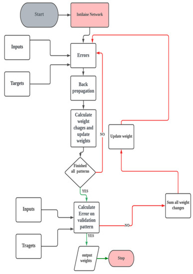 The main drawback of the backpropagation algorithm used in this study is the convergence or the local minima problem and a slow performance [34,35]. Nevertheless, this study proposed a new convergence technique to speed up the performance of the network by adding an acceleration factor (see Section 3.1).
