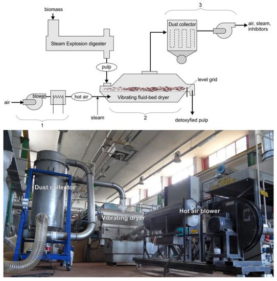 - Viola, E.; Arcieri, G.; Zimbardi, F.; Valerio, V.; Cerone, N.; De Corato, U. Evaluation of a pilot-scaled paddle dryer for the production of ethanol from lignocellulose including inhibitor removal and high-solids enzymatic hydrolysis. Biotechnol. Rep. 2016, 9, 38–45. [Google Scholar] [CrossRef]