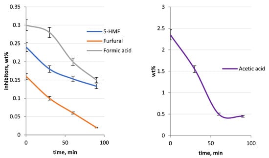 - Grzenia, D.L.; Schell, D.J.; Wickramsinghe, S.R. Detoxification of biomass hydrolysates by reactive membrane extraction. J. Membr. Sci. 2010, 348, 6–12. [Google Scholar] [CrossRef]