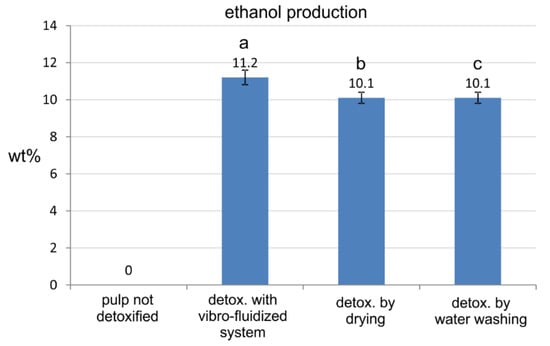 - When the substrate was detoxified by drying, a lower alcoholic production was observed. This could be related to a lower saccharification yield due to hornification;