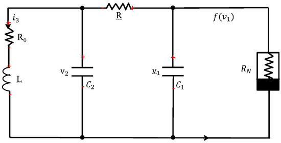 In this section, the practical merits of the proposed controllers and theory are corroborated using the well-known nonlinear Chua circuit, as shown in Figure 3. Considering the control input , its dynamics are generated as