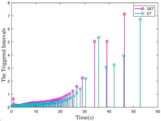 First, we define the inter-execution time . According to the ZOH scheme, there is when . Meanwhile, with the inequality (27), one has