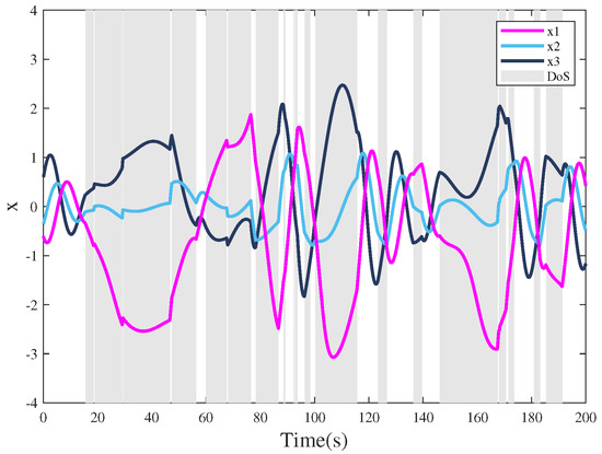 The stable state trajectories under aperiodic DoS attacks.