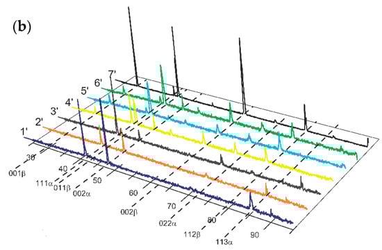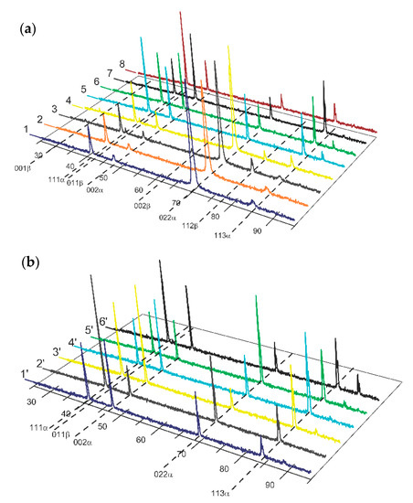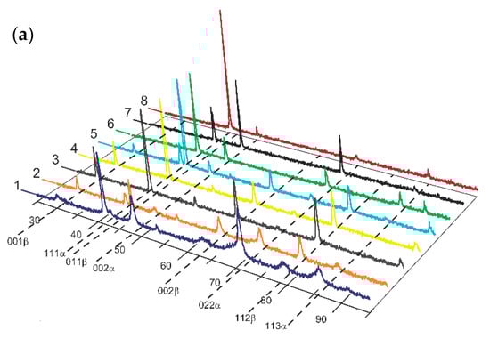 An X-ray diffraction study of the β↔α transformation in a hydrogen medium showed that the β-phase boundary shifts towards higher temperatures by 150–200 °C [18,19].