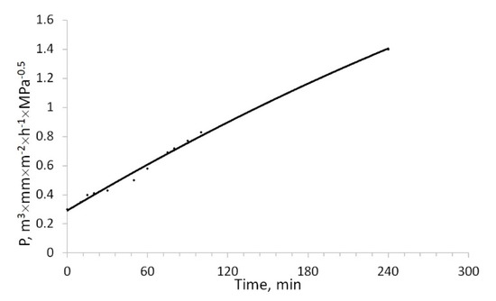 Figure 8 characterizes the time dependence of hydrogen permeability of the Cu-Pd50 foil at 320 °C.