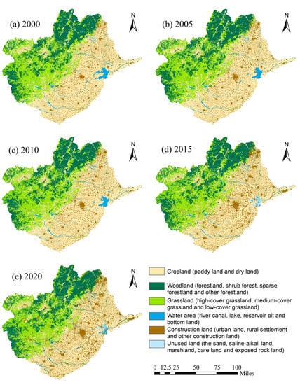 - Zhang, Z.; Wang, X.; Zhao, X.; Liu, B.; Yi, L.; Zuo, L.; Wen, Q.; Liu, F.; Xu, J.; Hu, S. A 2010 Update of National Land Use/Cover Database of China at 1:100000 Scale Using Medium Spatial Resolution Satellite Images. Remote Sens. Environ. 2014, 149, 142–154. [Google Scholar] [CrossRef]