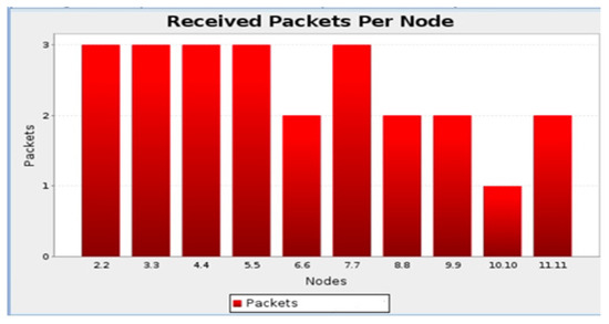 As a result of monitoring the network battery and voltage during the attack simulation, the effects of the attack are shown in Figure 8. Figure 9 shows the lost packets over time, and Figure 10 shows the state of the packets during the attack.