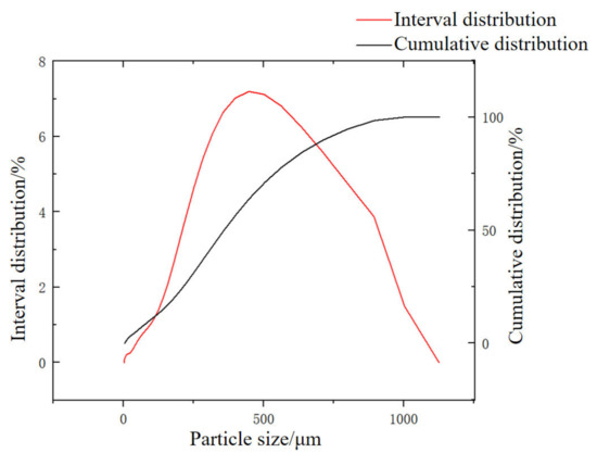 It can be seen from the particle size distribution curve of CCGS in Figure 3 that the particle size distribution of CCGS is between 2.8–1022 μm, and mainly distributed between 20–500 μm.