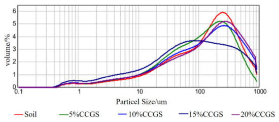 Effect of CCGS on soil particle size distribution with different CCGS content.