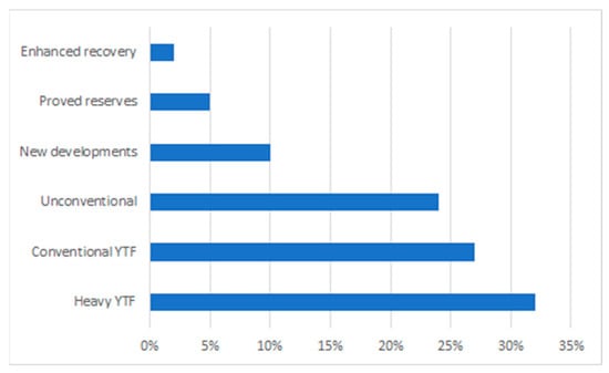 The O&G industry is constantly improving its operations to reduce costs and the social and environmental impacts of its processes. Nowadays, this industry is interested in mitigating high-water production problems in heavy oil reservoirs, a notorious problem worldwide that causes a significant increase in operational costs, energy consumption, and consequently the carbon footprint. Figure 2 shows that 32% of the remaining reservoirs in Colombia are heavy oil, while more than 50% were considered unconventional by the same group by 2013 [2]. There are various solutions to mitigate this problem. For example, enhanced oil recovery technologies play a vital role in increasing production efficiency. Unfortunately, these are expensive mitigation solutions and are usually long term. For this reason, it is essential to design new active technologies that allow for a reduction in water production in the short term.