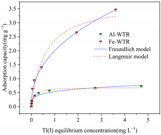 Isothermal adsorption model of Fe-WTR and Al-WTR for Tl(I).