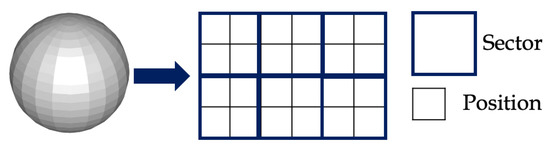 A schematic diagram of the ‘concept of positions’ (with 6 sectors and 24 positions; calculated using Equation (5) for the PP).