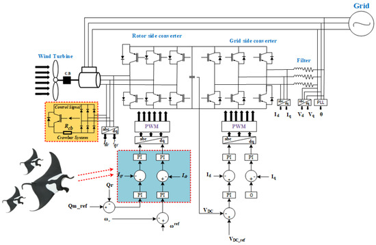 This paper is prepared as follows: The introduction, relevant literature, and purpose are described in Section 1 of this work, which is divided into six parts. Modeling, development, and the failure ratio of VSWGs and basic concepts of the investigated WE systems are presented in Section 2. In Section 3, the application of the MRFO method is discussed in detail. In Section 4, control of the crowbar system with MRFO-PI is studied for solving FRT issues in the investigated VSWGs. A discussion of simulated results is described in Section 5. Finally, concluding remarks are found in Section 6.