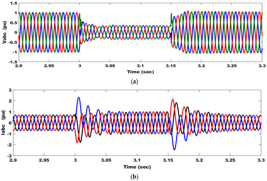 Under fault conditions, WTs may be disconnected from the grid, necessitating the use of new grid codes to improve fault ride-through (FRT) capabilities. FRT has two requirements: WTs must remain connected to the grid even if the voltage is above or below the rated value, and Q injections must occur under abnormal situations such as faults [25,26]. DFIWG stator terminals are directly connected to the grid and their rotor terminals are connected to the grid via a BTB converter. Its smaller size converter leads to reduced power losses and is cost-efficient, although Q supply capability is small due to its size. FACTS devices are equipped with the DFIWG to increase Q supply. Grid faults lead to oscillations in rotor speed and electromagnetic torque, which is transferred to the grid voltage. The rotor side converter (RSC) is deactivated with only a conventional crowbar, and this leads to a reduction of injected Q [27,28]. The PMSWG is directly connected to the power grid through a full-scale BTB converter. This converter decouples the PMSWG from the grid, making it less sensitive to grid faults compared with the DFIWG. It is capable of injecting the rated Q to fully meet grid code requirements for voltage support [29].