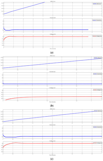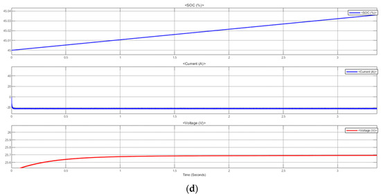 Charging and discharging at different state of charge (SOC). (a) Solar/PV (x axis = BESS, y axis = time in seconds), (b) solar–wind hybrid (x axis = BESS, y axis = time in seconds), (c) wind (x axis = BESS, y axis = time in hours) and (d) battery (x axis = BESS, y axis = time in hours).