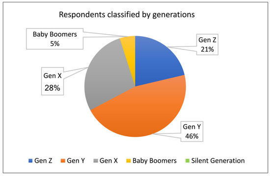 Numbers of respondents classified by generation, shown in percentage.