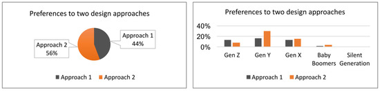 Preferences for two design approaches shown with a generational breakdown.