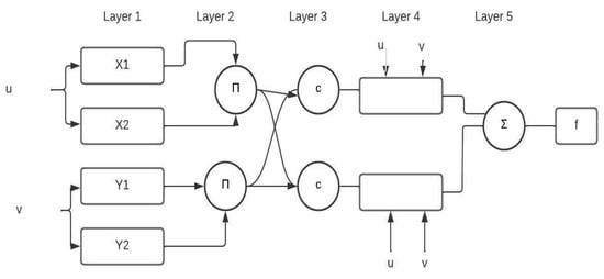 An artificial neural network that is built on the Takagi-Sugeno fuzzy inference system is called an adaptive neuro-fuzzy inference system (ANFIS). It wasn’t until the early 1990s that the methodology was created. It offers the chance to use the benefits of both types of systems under a single framework because it combines neural networks and fuzzy logic concepts. Its inference system is made up of a collection of fuzzy IF–THEN rules with the capacity to approximate nonlinear functions through learning. As a result, ANFIS is regarded as a universal estimator. The best parameters acquired by genetic algorithm may be used to employ the ANFIS in a more efficient and optimal manner. Figure 1 presents the ANFIS architecture [41]. There are five layers in the ANFIS model. Each layer has its own set of nodes, which are specified by the node function. Layer one is the layer in which all of the nodes have a node function and are adaptive nodes. The second layer is where nodes multiply incoming signals, and the output is the sum of all the incoming signals. The firing strength of the ith rule is compared to the total firing strength of all node rules, which is the focus of Layer 3’s calculation. Each node in layer 4 is responsible for calculating the contribution that the ith rule makes to the overall output. The signal node in layer 5 calculates the final output as the sum of all input signals.