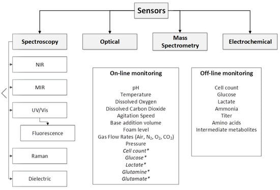 Figure 6 summarizes different sensor techniques available on the market together with various process parameters monitored online and offline.