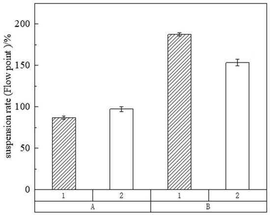 Suspension rate and flow point of APEG and the polysulfonate dispersant (A1 and B1 are suspension rate and flow point value of APEG; A2 and B2 are suspension rate and flow point value of the polysulfonate dispersant).