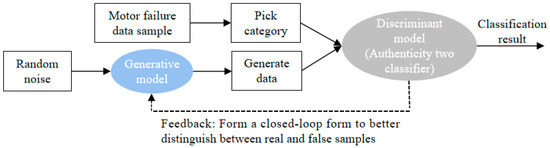 GAN is a deep learning model for unsupervised learning on complex distributions. It generates high-quality samples with the idea of a unique zero-sum game and adversarial training to compensate for the lack of training data, with more powerful feature learning and feature representation than traditional machine learning algorithms [7]. GAN is well used for useful new sample generation by optimizing both generators and discriminators [9], and related analysis methods are constantly favored by researchers and have been well applied in the fields of electricity and image recognition, which are developing rapidly. Yufei Liu et al. used GAN to train image data, expanded the training set, generated comprehensive sample data, and implemented deep learning classification with a deep neural network (DNN) as a classifier [10]. Yong Oh Lee et al. investigated two data sampling methods for common faults of induction motors: the standard oversampling method and the GAN-based oversampling method. The experimental results show that the GAN-based oversampling method is better at solving the problem of imbalance between fault data and normal data [11]. Qi Li also studied the imbalanced data of large machinery, proposed the enhanced generative adversarial network (EGAN), which causes the model to automatically enhance small samples to balance the fault and normal data, and proposed an adaptive training strategy to optimize the convergence speed and stability of the network. The accuracy of the model was verified using two data sets [12].