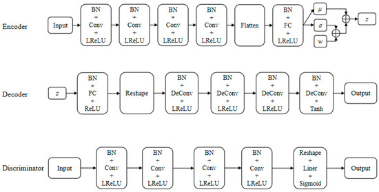 Detailed architectures of the encoder, the decoder, and the discriminator of the new VAE-WGAN model.