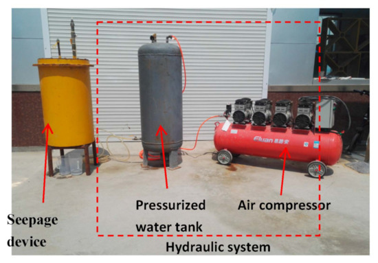 The seepage erosion device is also a set of permeability coefficient testing devices. The hydraulic system uses compressed air from an air compressor to provide pressure to act on the pressurized water tank, convert it into water pressure, and act on one end of the tested sample. The other end of the sample is the free outflow end. By measuring the water seepage over a period of time, the grouting-reinforced body permeability coefficient can be obtained.