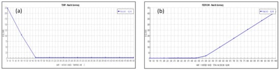 Sensitivity analysis of the SD stage involved the study of the effect of different parameters on the final moisture content of the sugar powder. Results showed that the final moisture content of the powdered product decreased with an increase in the mass flow rate of the drying air (Figure S4, Supplementary Materials). Complete removal of excess moisture was observed at an airflow rate of 8000 kg/h resulting in powdered sugar with the equilibrium moisture content. High flow rates of the drying air reduced the droplet size due to their improved atomizing effect. This resulted in a finer particle size of the product with a larger surface area that facilitated the rapid and higher drying rate of the product with complete removal of moisture []. It is worth specifying that the blank simulation without GA addition resulted in low drying efficiency. This can be attributed to the possible stickiness of the feed extract, as reported in several other related experimental works [].