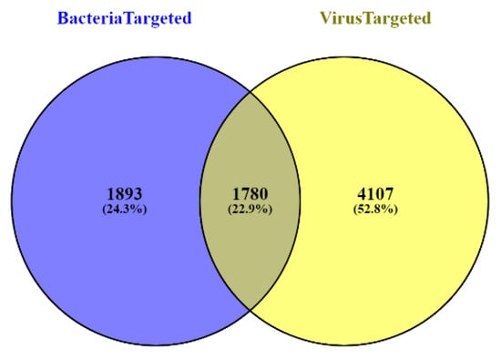 Venn diagram of bacterial- and viral-targeted human proteins.