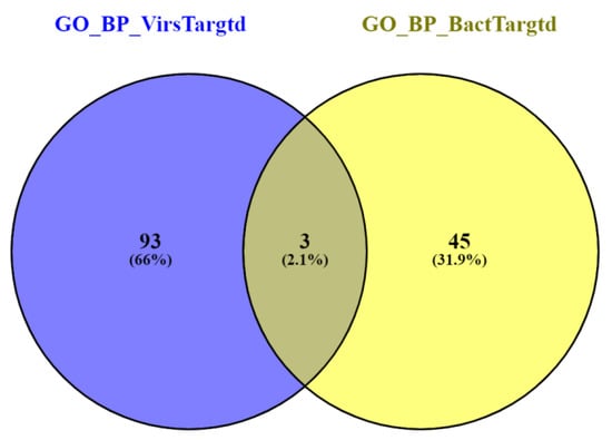Venn diagram of enriched biological processes for bacterial- and viral-targeted human proteins.