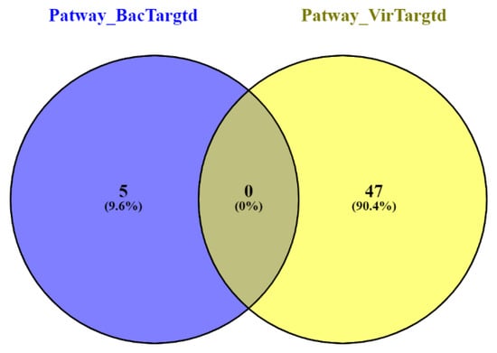 Venn diagram of enriched pathways for bacterial- and viral-targeted human proteins.