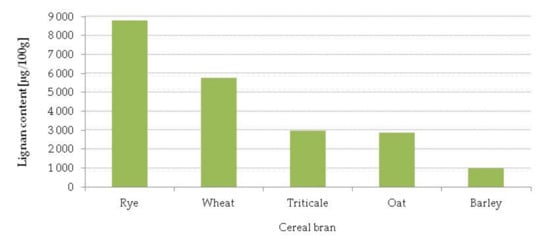 - Makowska, A.; Waśkiewicz, A.; Chudy, S. Lignans in triticale grain and triticale products. J. Cereal Sci. 2020, 93, 102939. [Google Scholar] [CrossRef]