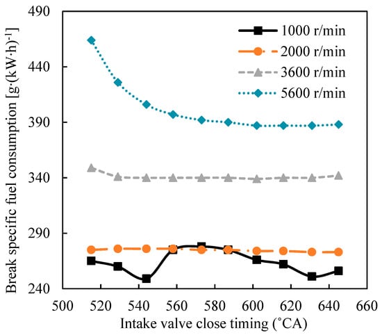 Effect of the intake valve close timing on the fuel consumption at different speeds of under full load.
