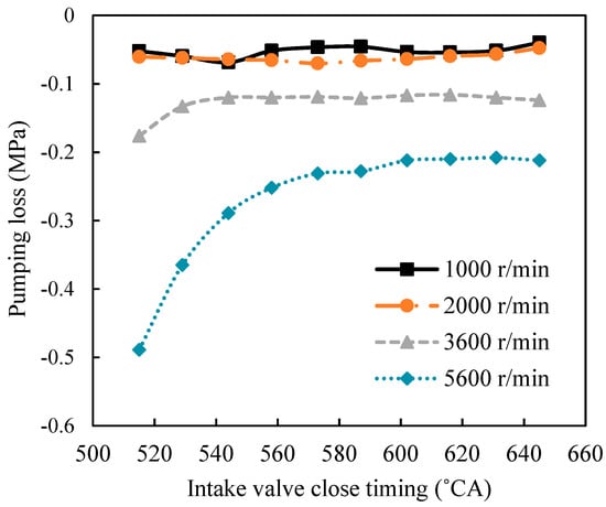 Effect of intake valve close time on pumping loss under different speeds of full load conditions.