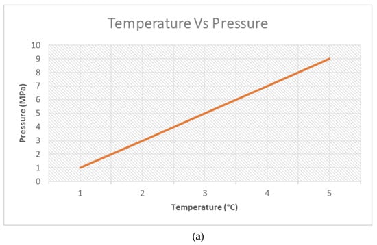 Pyrolysis processes and their subsequent products are both influenced by their operating pressures. Operating pressures in pyrolysis can either be low or high. A low pressure (under vacuum, or in the presence of inert diluent) favours the production of primary products, including monomers, whereas complex liquid fractions are associated with high pressures [18]. With a high pressure, the boiling point of pyrolytic products attain an increment. This increment fosters a pressurised environment, a condition in which heavy hydrocarbons are further pyrolysed rather than vaporised at a given operating temperature [85]. Essentially, as explained in the work of Sato and Sakata [85], more heat energy is permissible for the purpose of increased hydrocarbon cracking with respect to a pyrolysis system subjected to a pressurised reaction. The issue of a pressurised system is associated with a high pressure, in effect. It is worth looking at Figure 2a, which is a graphical representation of Gay Lussac’s Law, to put this into context. As such, with an increase in pressure, the system becomes compressed, implying less occupying space for the gases (non-condensable gases in this case), giving rise to a reduction in their average molecular weight due to their increased speed. In the computed Table 3 below, Sato and Sakata [85] show this effect.
