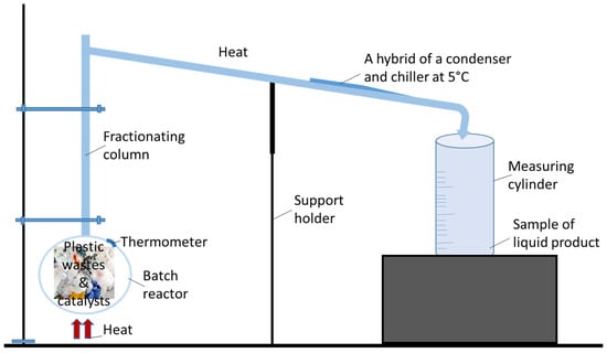Schematic diagram of a fuel production assembly for mixed waste plastics (adapted from [38]).