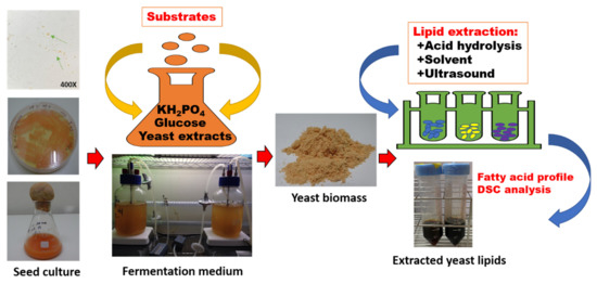 - Kitcha, S.; Cheirsilp, B. Screening of oleaginous yeasts and optimization for lipid production using crude glycerol as a carbon source. Energy Procedia 2011, 9, 274–282. [Google Scholar] [CrossRef] [Green Version]