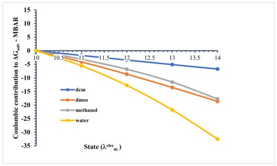 Contribution of electrostatic interaction at each stage of the ∆Gsolv calculation (MBAR).