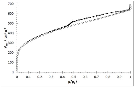 The most commonly used activated carbon in the FVR systems is BAX 1100. The pore structure of the activated carbon was investigated by N2 adsorption at −196 °C. The isotherm obtained is shown in Figure 1. BAX 1100 is characterized by a high specific surface area of approximately 1300 m2/g and a high proportion of micropores and mesopores (Figure 1). It has a bulk density of 355 ± 30 g/L.