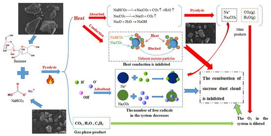 Inhibition mechanism of NaHCO3 on sucrose dust combustion.