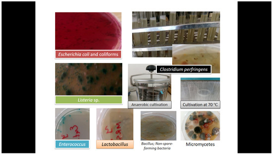 Pathogenic microorganisms were found in the studied variants: Escherichia coli and coliforms, Enterococcus, Clostridium perfringens, Listeria sp.; Salmonella sp. was absent (Table 3).