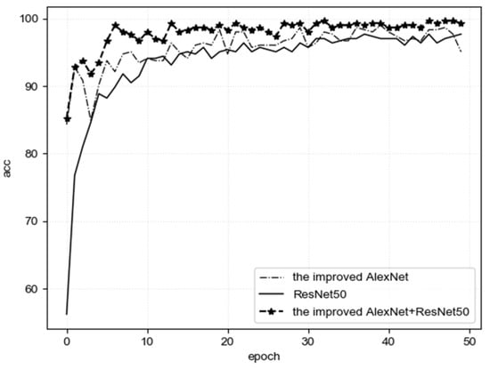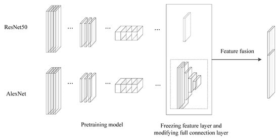 The dual-channel feature-extraction process designed in this paper is shown in Figure 9, and the weight ratio of optimized AlexNet and ResNet50 is set to 3:7.