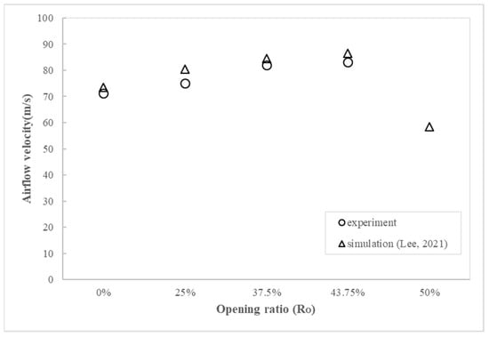 Comparison of the velocity of air flow from the OWC with various opening ratios.