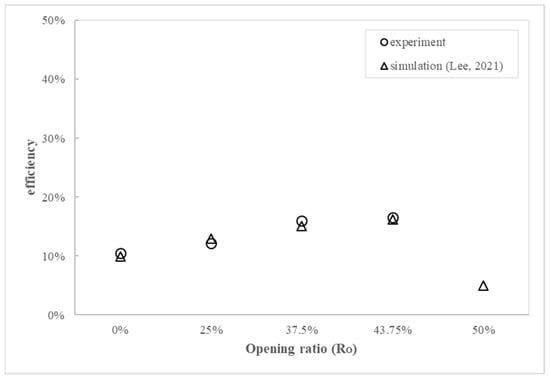 Comparison for the converting efficiency from the OWC with various opening ratios.