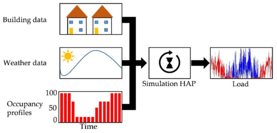 Figure 3. Schematic illustration of the determination of the load profiles using the Hourly Analysis Program (HAP).
